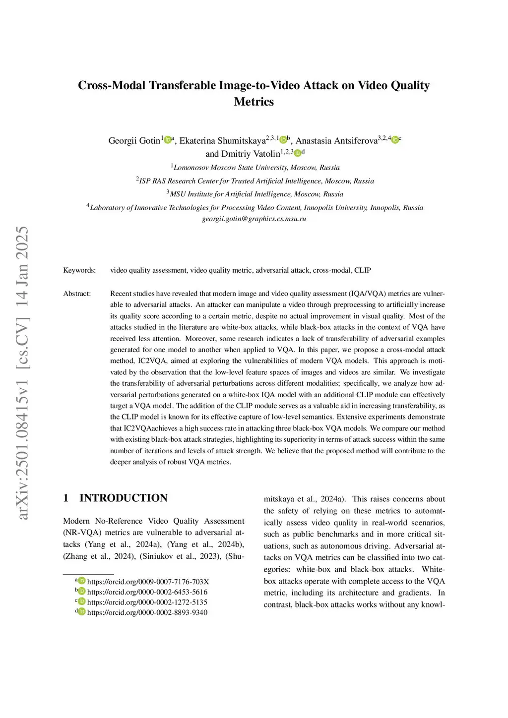 Cross-Modal Transferable Image-to-Video Attack on Video Quality Metrics