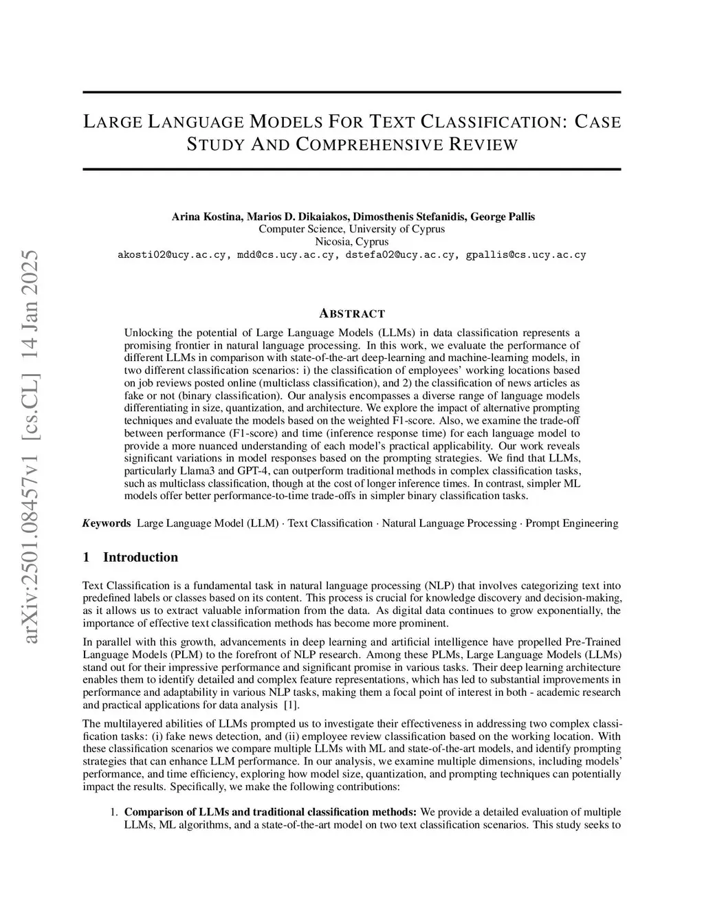 Large Language Models For Text Classification: Case Study And Comprehensive Review