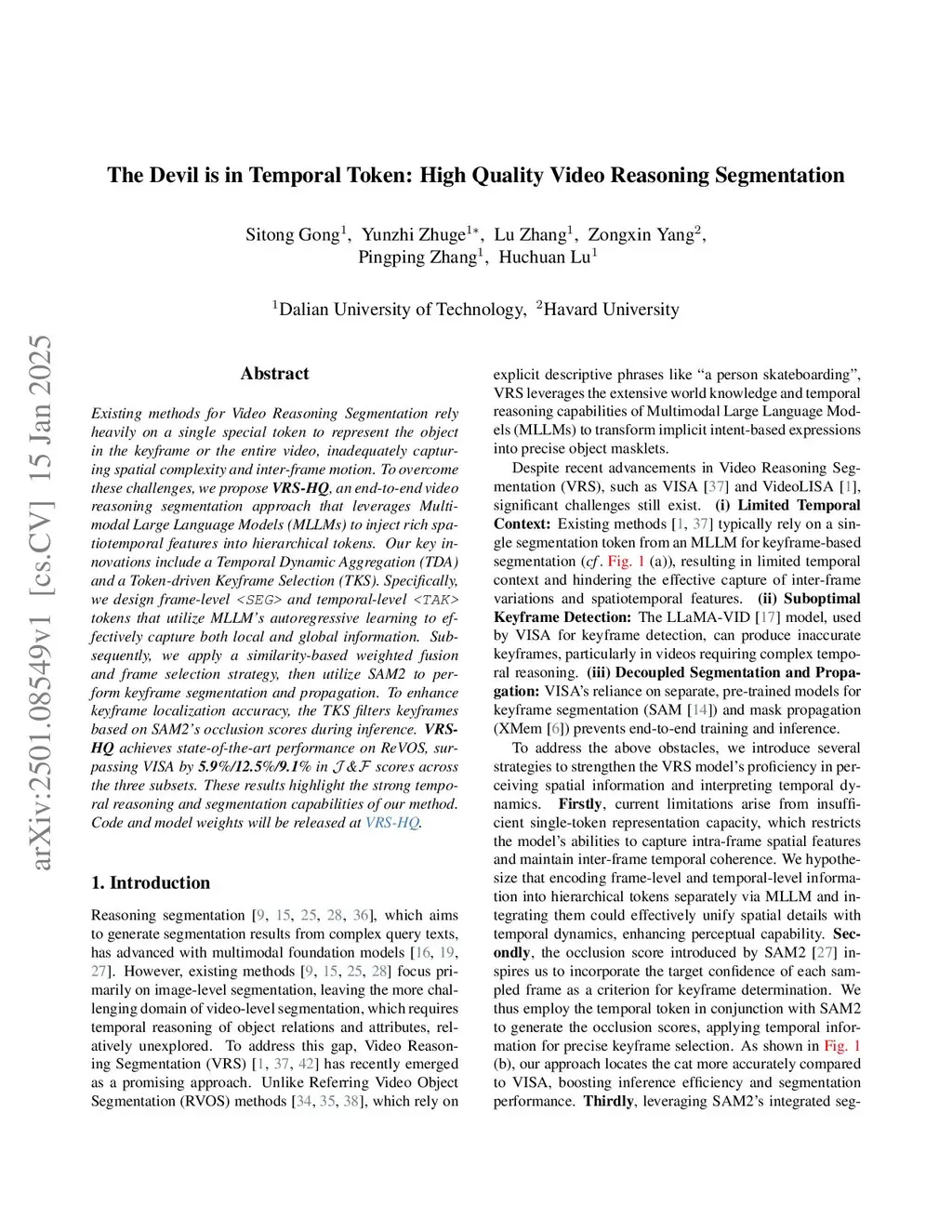 The Devil is in Temporal Token: High Quality Video Reasoning Segmentation