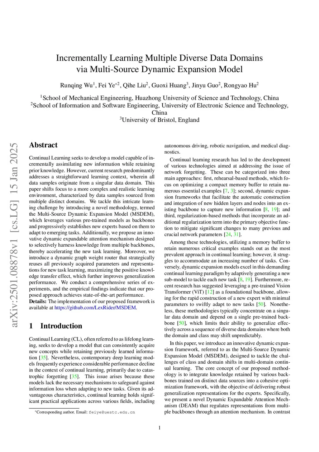 Incrementally Learning Multiple Diverse Data Domains via Multi-Source Dynamic Expansion Model