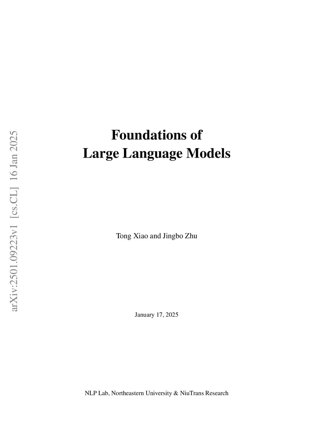This is a book about large language models. As indicated by the title, it primarily focuses on foundational concepts rather than comprehensive coverage of all cutting-edge technologies. The book is structured into five main chapters, each exploring a key area: pre-training, generative models, prompting, alignment, and inference. It is intended for college students, professionals, and practitioners in natural language processing and related fields, and can serve as a reference for anyone interested in large language models.