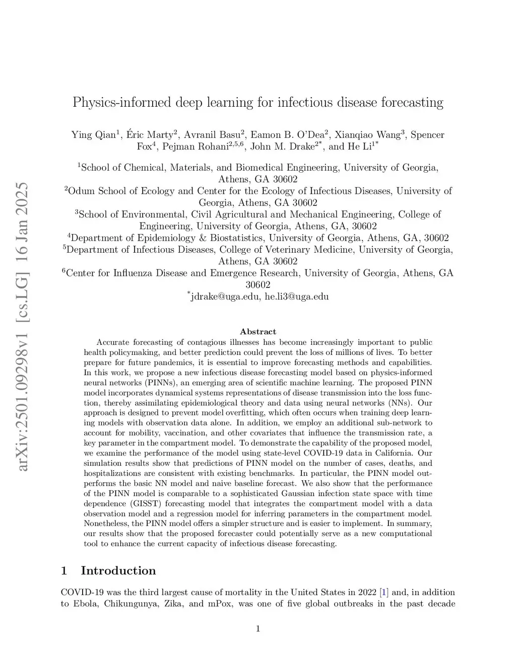 Accurate forecasting of contagious diseases is critical for public health policymaking and pandemic preparedness. We propose a new infectious disease forecasting model based on physics-informed neural networks (PINNs), an emerging scientific machine learning approach. By embedding a compartmental model into the loss function, our method integrates epidemiological theory with data, helping to prevent model overfitting. We further enhance the model with a sub-network that accounts for covariates such as mobility and cumulative vaccine doses, which influence the transmission rate. Using state-level COVID-19 data from California, we demonstrate that the PINN model accurately predicts cases, deaths, and hospitalizations, aligning well with existing benchmarks. Notably, the PINN model outperforms naive baseline forecasts and several sequence deep learning models, including Recurrent Neural Networks (RNNs), Long Short-Term Memory (LSTM) networks, Gated Recurrent Units (GRUs), and Transformers. It also achieves performance comparable to a sophisticated Gaussian infection state forecasting model that combines compartmental dynamics, a data observation model, and parameter regression. However, the PINN model features a simpler structure and is easier to implement. In summary, we systematically evaluate the PINN model's ability to forecast infectious disease dynamics, demonstrating its potential as an efficient computational tool to strengthen forecasting capabilities.
