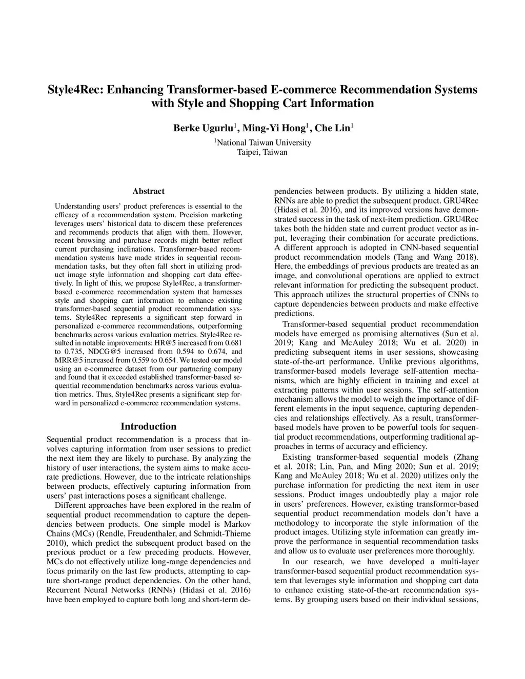 Style4Rec: Enhancing Transformer-based E-commerce Recommendation Systems with Style and Shopping Cart Information