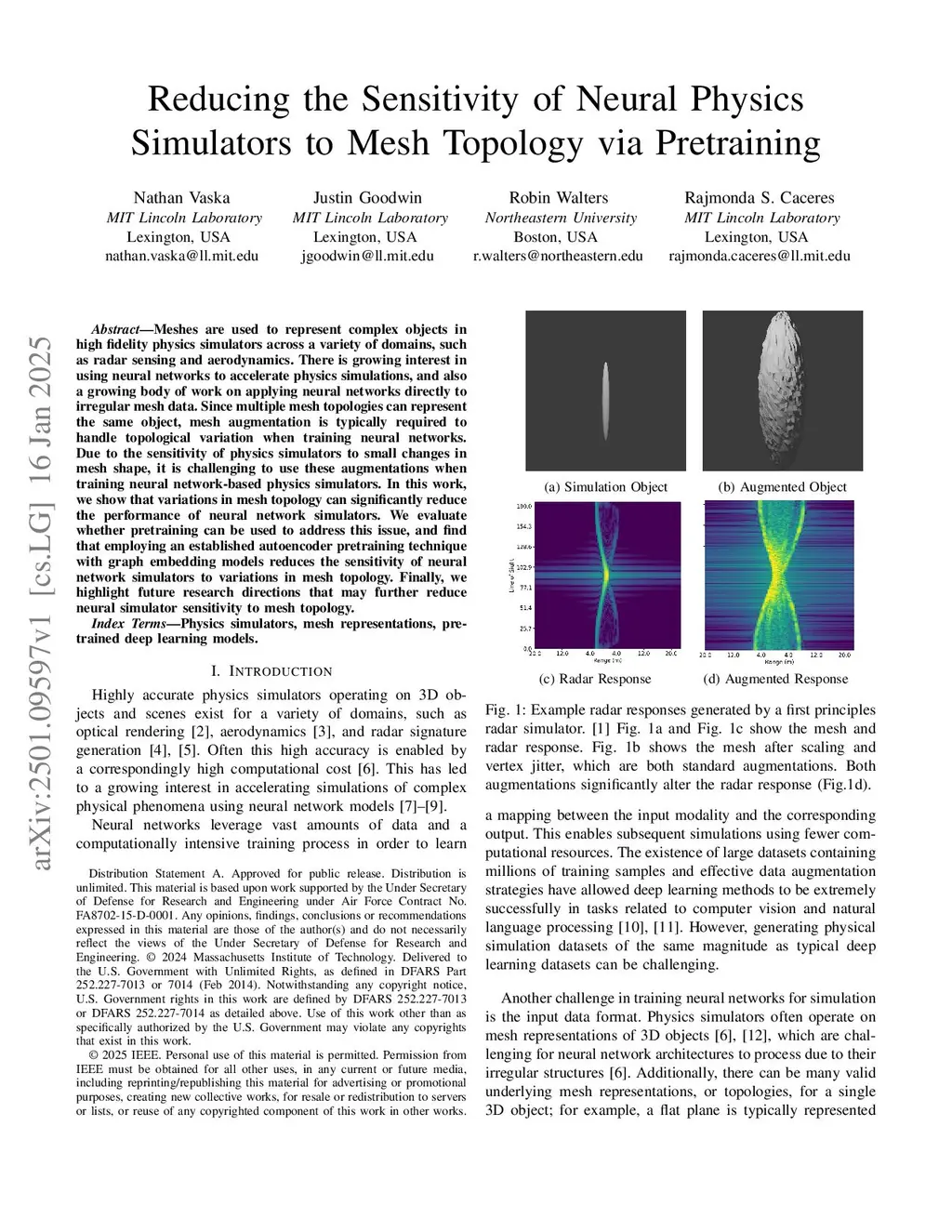 Meshes are used to represent complex objects in high fidelity physics simulators across a variety of domains, such as radar sensing and aerodynamics. There is growing interest in using neural networks to accelerate physics simulations, and also a growing body of work on applying neural networks directly to irregular mesh data. Since multiple mesh topologies can represent the same object, mesh augmentation is typically required to handle topological variation when training neural networks. Due to the sensitivity of physics simulators to small changes in mesh shape, it is challenging to use these augmentations when training neural network-based physics simulators. In this work, we show that variations in mesh topology can significantly reduce the performance of neural network simulators. We evaluate whether pretraining can be used to address this issue, and find that employing an established autoencoder pretraining technique with graph embedding models reduces the sensitivity of neural network simulators to variations in mesh topology. Finally, we highlight future research directions that may further reduce neural simulator sensitivity to mesh topology.
