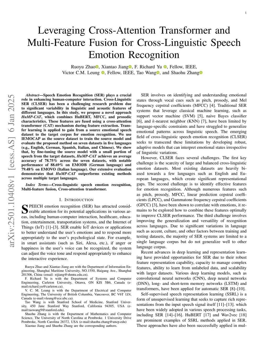 Leveraging Cross-Attention Transformer and Multi-Feature Fusion for Cross-Linguistic Speech Emotion Recognition