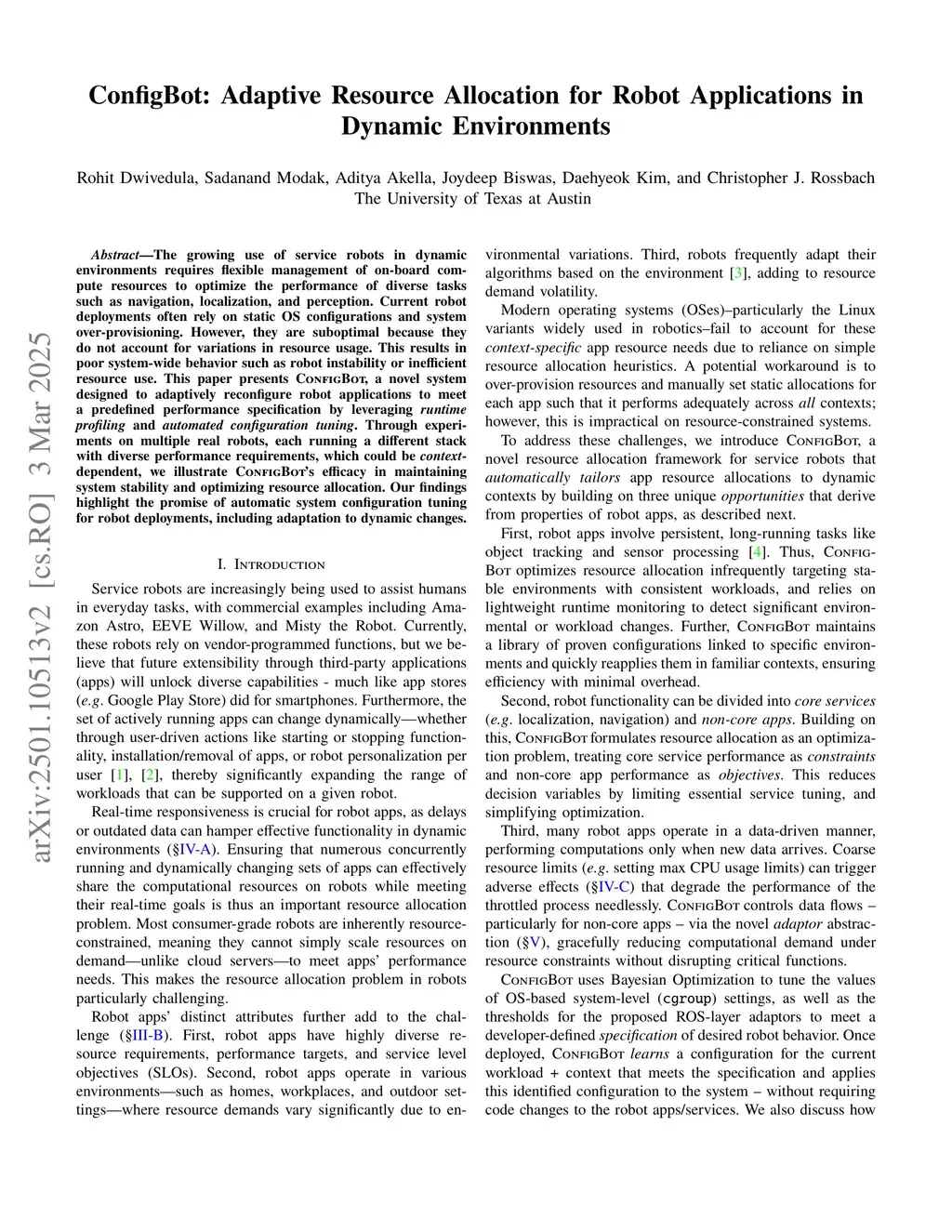 ConfigBot: Adaptive Resource Allocation for Robot Applications in Dynamic Environments