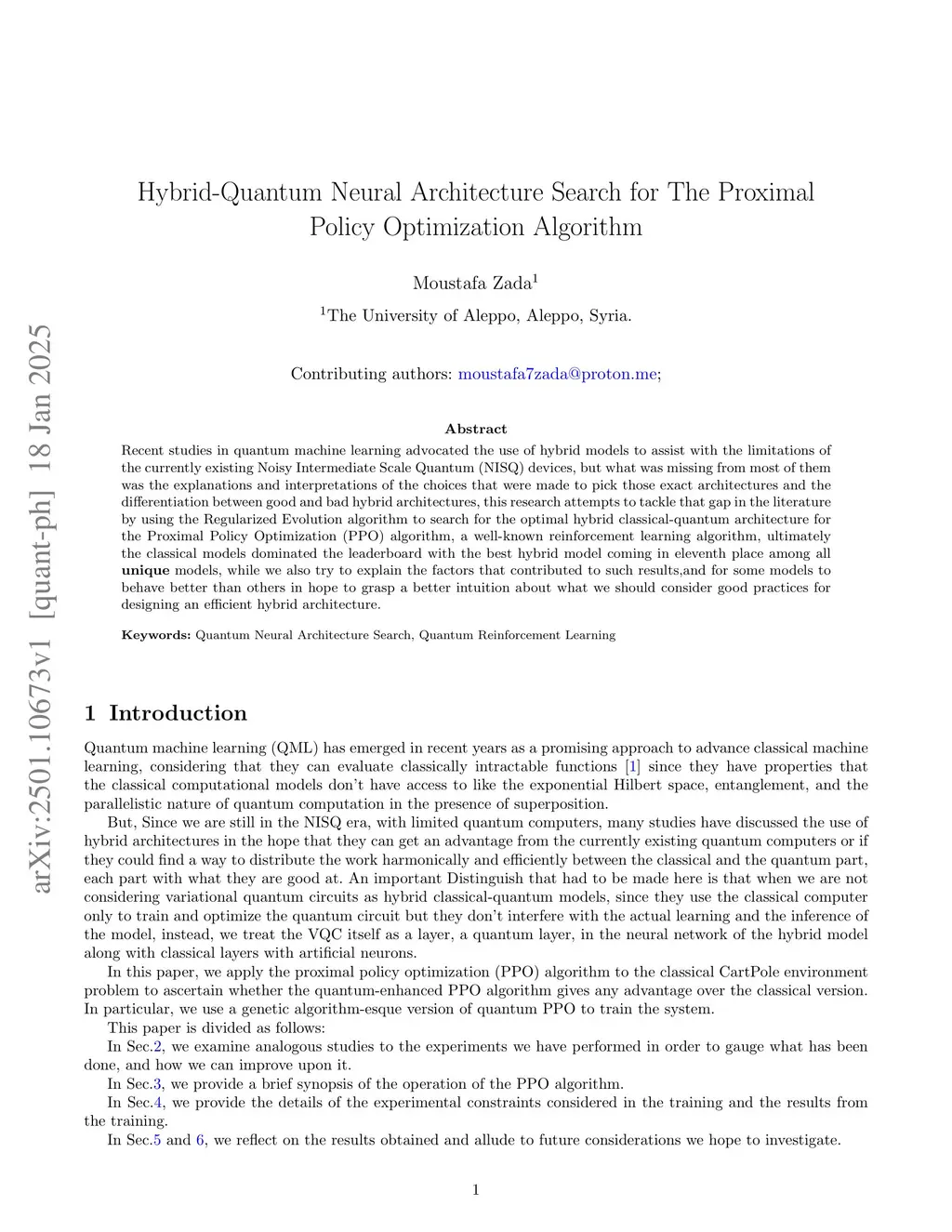 Hybrid-Quantum Neural Architecture Search for The Proximal Policy Optimization Algorithm
