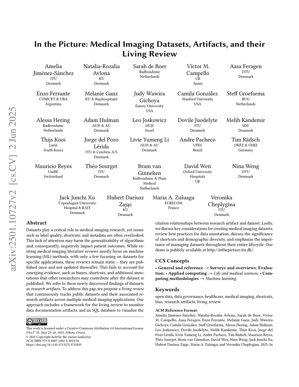 In the Picture: Medical Imaging Datasets, Artifacts, and their Living Review