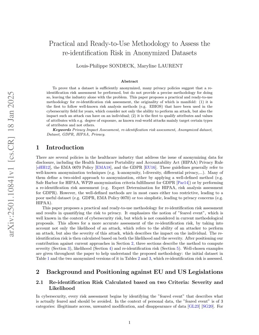 Practical and Ready-to-Use Methodology to Assess the re-identification Risk in Anonymized Datasets