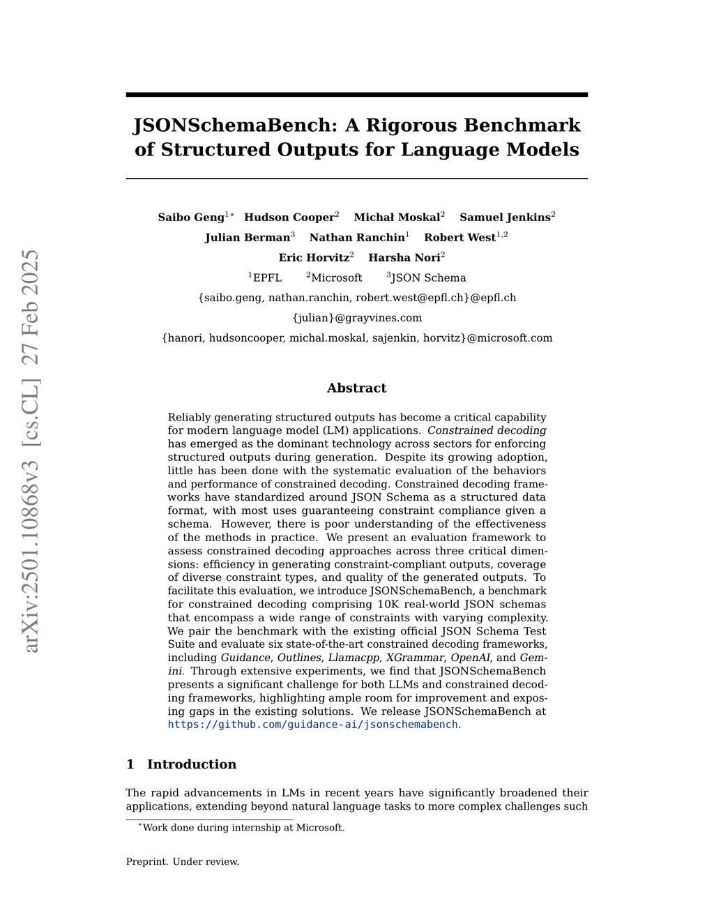 JSONSchemaBench: A Rigorous Benchmark of Structured Outputs for Language Models