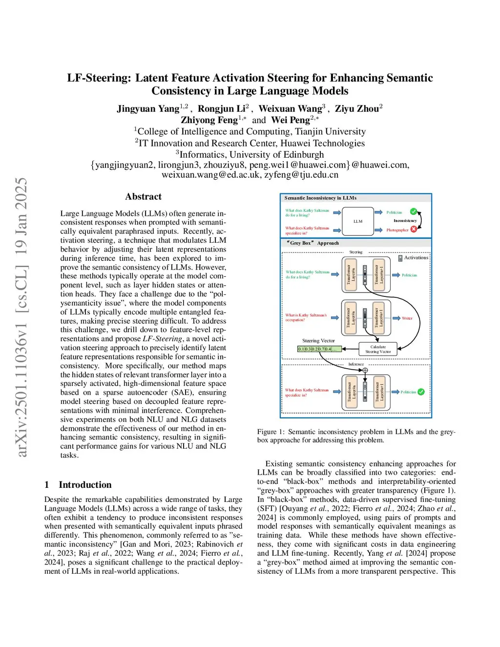 LF-Steering: Latent Feature Activation Steering for Enhancing Semantic Consistency in Large Language Models