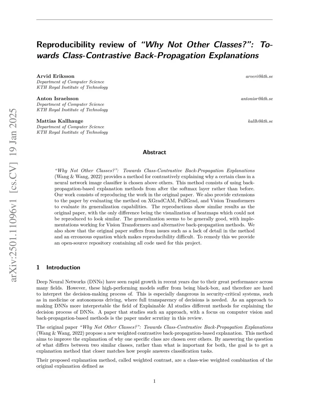 Reproducibility review of "Why Not Other Classes": Towards Class-Contrastive Back-Propagation Explanations
