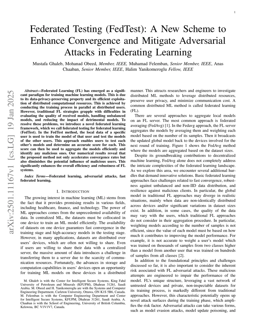 Federated Testing (FedTest): A New Scheme to Enhance Convergence and Mitigate Adversarial Attacks in Federating Learning