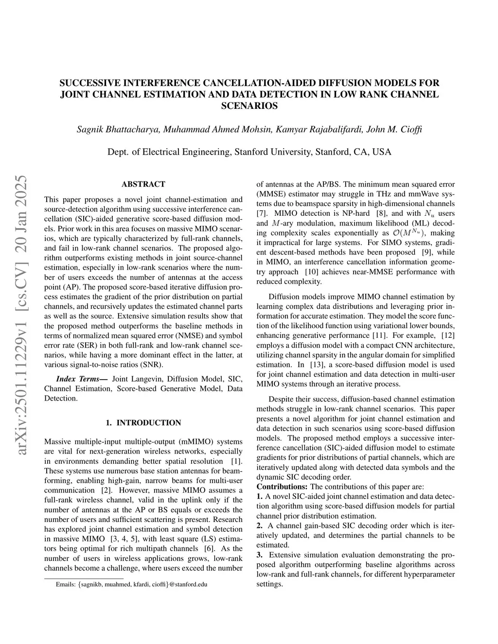 Successive Interference Cancellation-aided Diffusion Models for Joint Channel Estimation and Data Detection in Low Rank Channel Scenarios