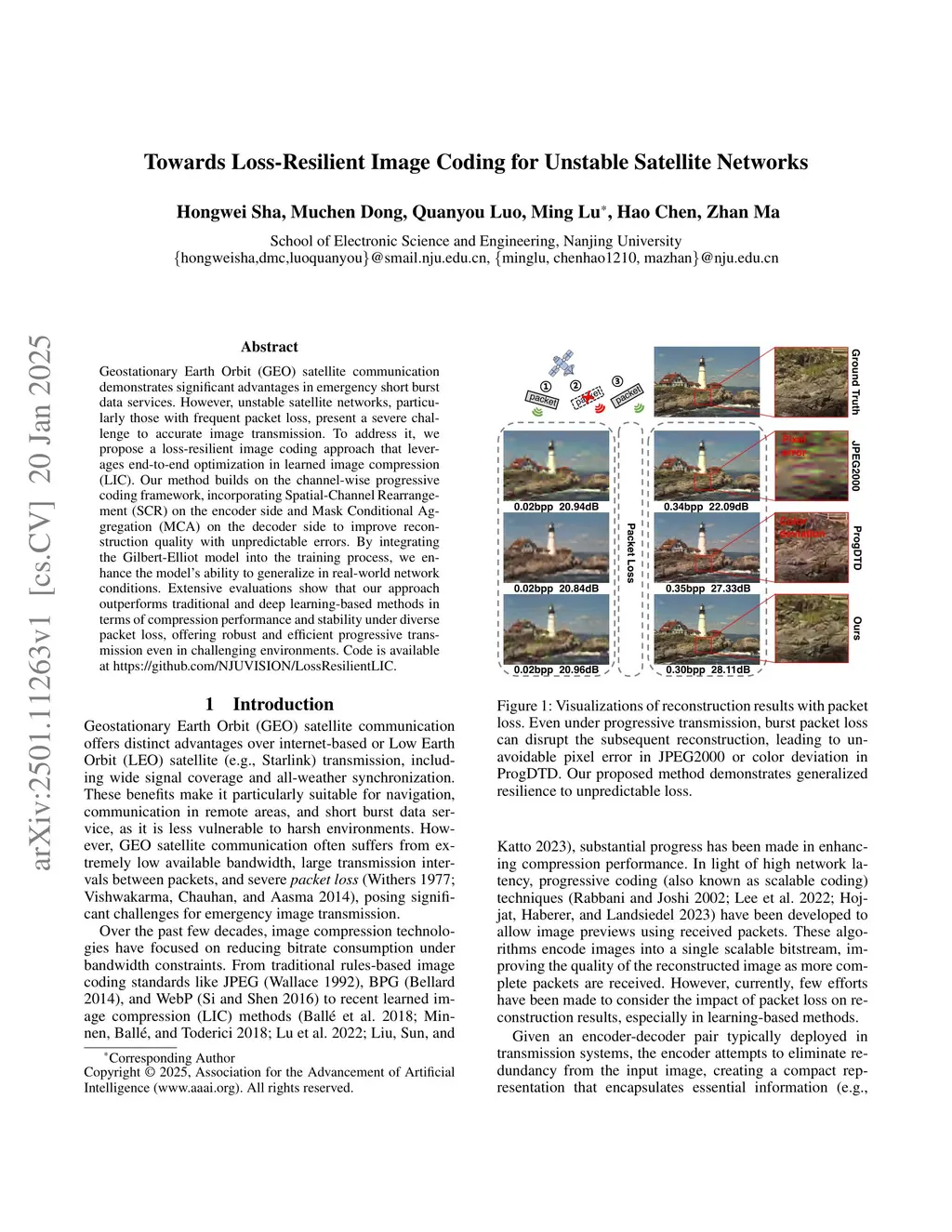 Towards Loss-Resilient Image Coding for Unstable Satellite Networks