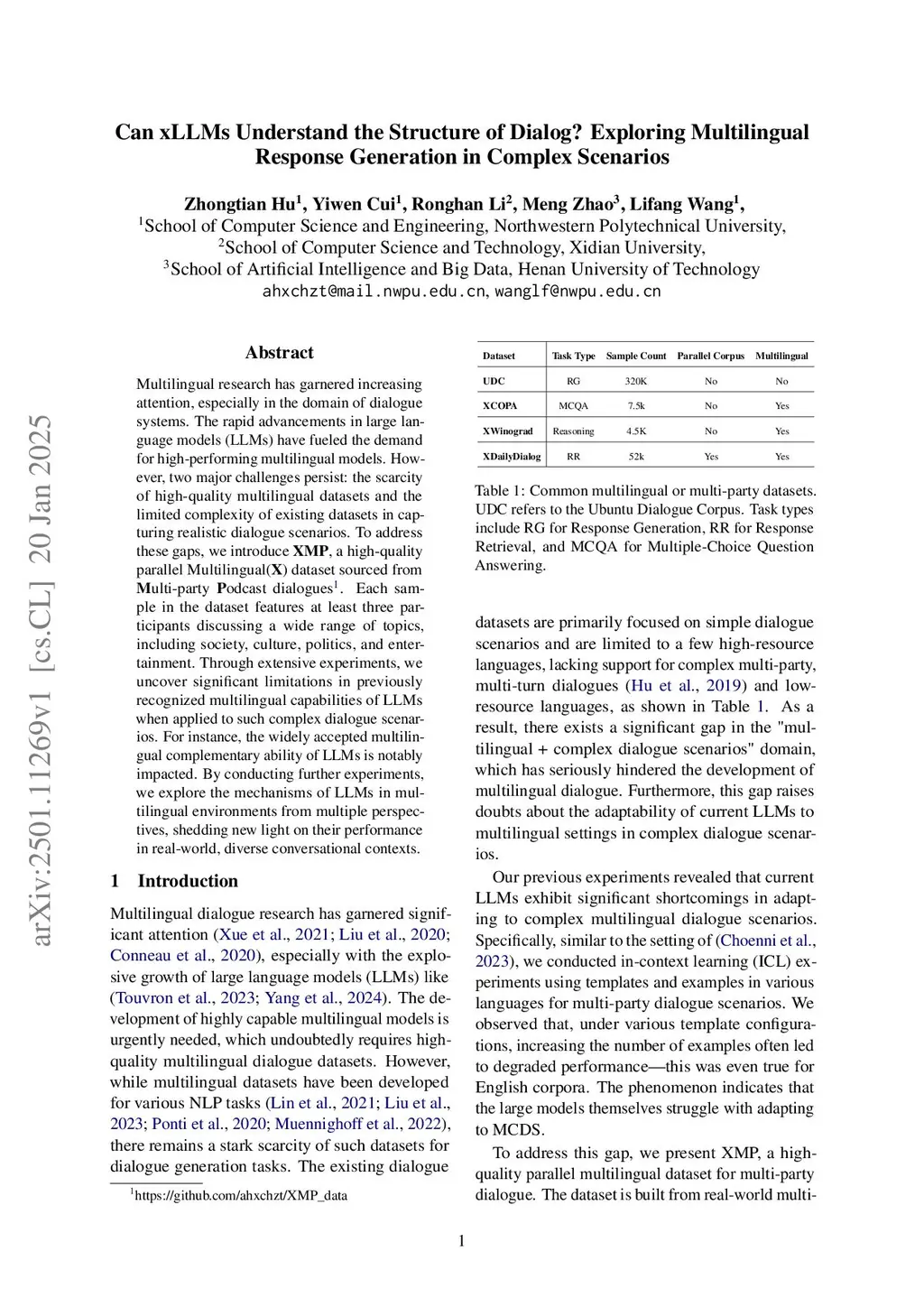 Current multilingual large language models(MLLMs) still focus on simple question-answering formats, often overlooking more complex dialogue scenarios. In other words, their capabilities of multilingual large models have yet to be validated in dialogue tasks with intricate structures. We therefore ask, Q1: How well do LLMs generalize to more complex dialog scenarios? Q2: Can supervised fine-tuning on a high-quality parallel benchmark restore this ability? Q3: Does the "multilingual complementarity" effect survive in the setting? To answer these questions, we introduce XMP, a high-quality parallel Multilingual dataset sourced from Multi-party Podcast dialogues, which is the first parallel dataset focusing on multi-party dialogue scenarios. Most samples in the dataset feature three or more participants, discussing a wide range of topics. Through extensive experiments, we find that, R1: MLLMs fail to generalize to multi-party setting, R2 Fine-tuning on XMP improves only marginally, with the 70B model achieving at most a 1% absolute gain over its 8B counterpart; R3: Mixing languages during SFT is usually detrimental, with any benefits being marginal and limited to isolated cases in the 70B model.