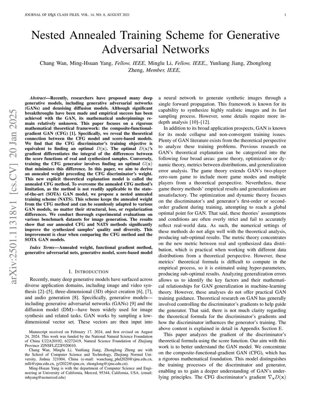 Recently, researchers have proposed many deep generative models, including generative adversarial networks(GANs) and denoising diffusion models. Although significant breakthroughs have been made and empirical success has been achieved with the GAN, its mathematical underpinnings remain relatively unknown. This paper focuses on a rigorous mathematical theoretical framework: the composite-functional-gradient GAN (CFG)[1]. Specifically, we reveal the theoretical connection between the CFG model and score-based models. We find that the training objective of the CFG discriminator is equivalent to finding an optimal D(x). The optimal gradient of D(x) differentiates the integral of the differences between the score functions of real and synthesized samples. Conversely, training the CFG generator involves finding an optimal G(x) that minimizes this difference. In this paper, we aim to derive an annealed weight preceding the weight of the CFG discriminator. This new explicit theoretical explanation model is called the annealed CFG method. To overcome the limitation of the annealed CFG method, as the method is not readily applicable to the SOTA GAN model, we propose a nested annealed training scheme (NATS). This scheme keeps the annealed weight from the CFG method and can be seamlessly adapted to various GAN models, no matter their structural, loss, or regularization differences. We conduct thorough experimental evaluations on various benchmark datasets for image generation. The results show that our annealed CFG and NATS methods significantly improve the quality and diversity of the synthesized samples. This improvement is clear when comparing the CFG method and the SOTA GAN models.