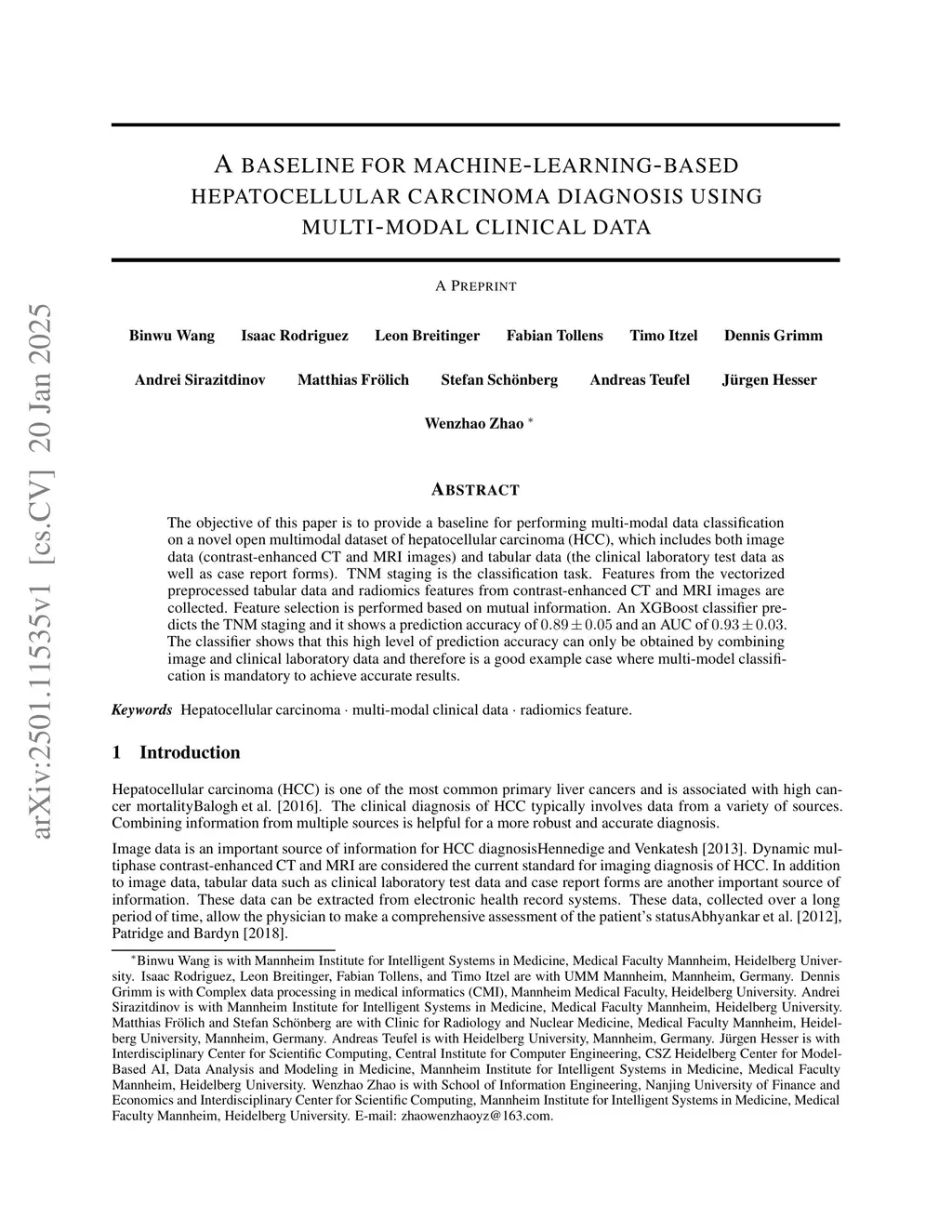 A baseline for machine-learning-based hepatocellular carcinoma diagnosis using multi-modal clinical data