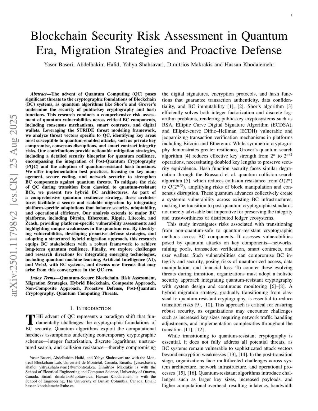 Blockchain Security Risk Assessment in Quantum Era, Migration Strategies and Proactive Defense