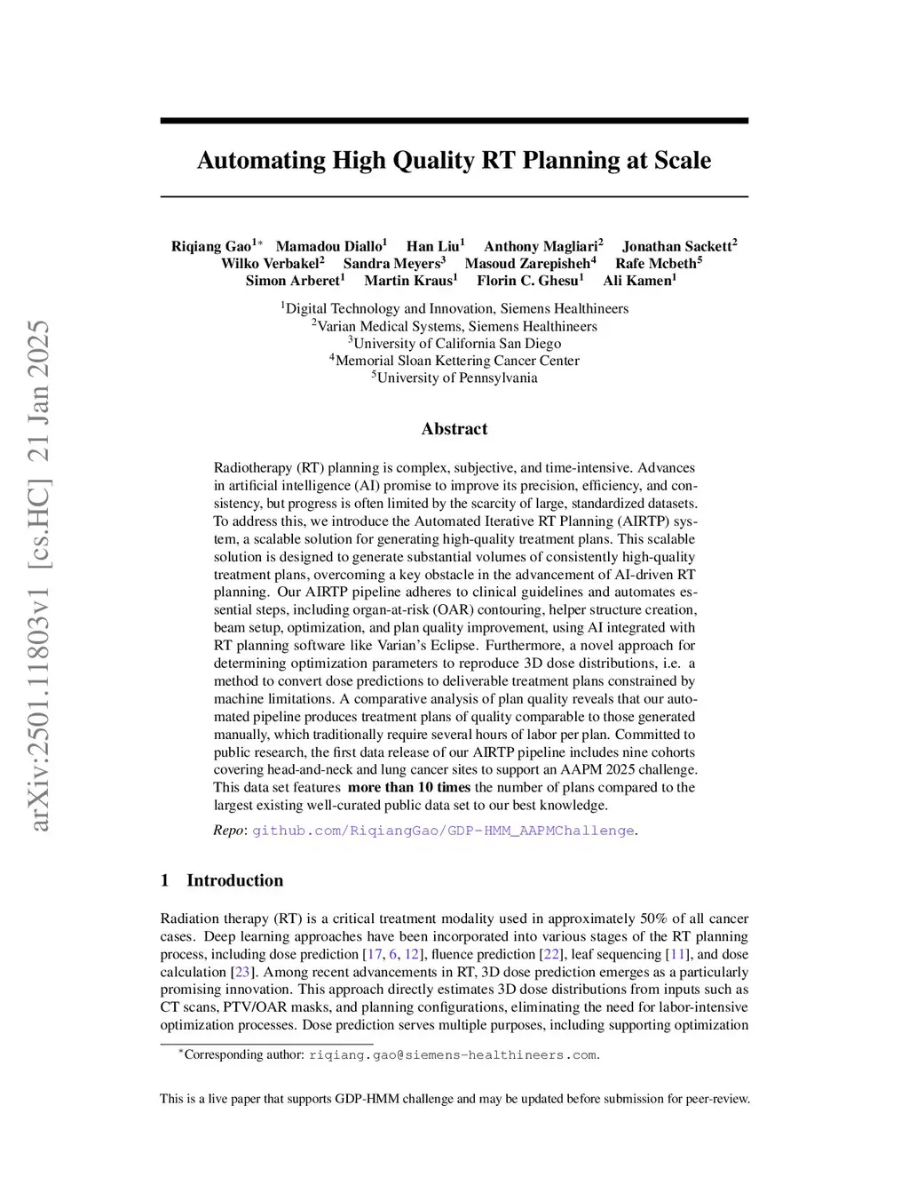 Automating RT Planning at Scale: High Quality Data For AI Training