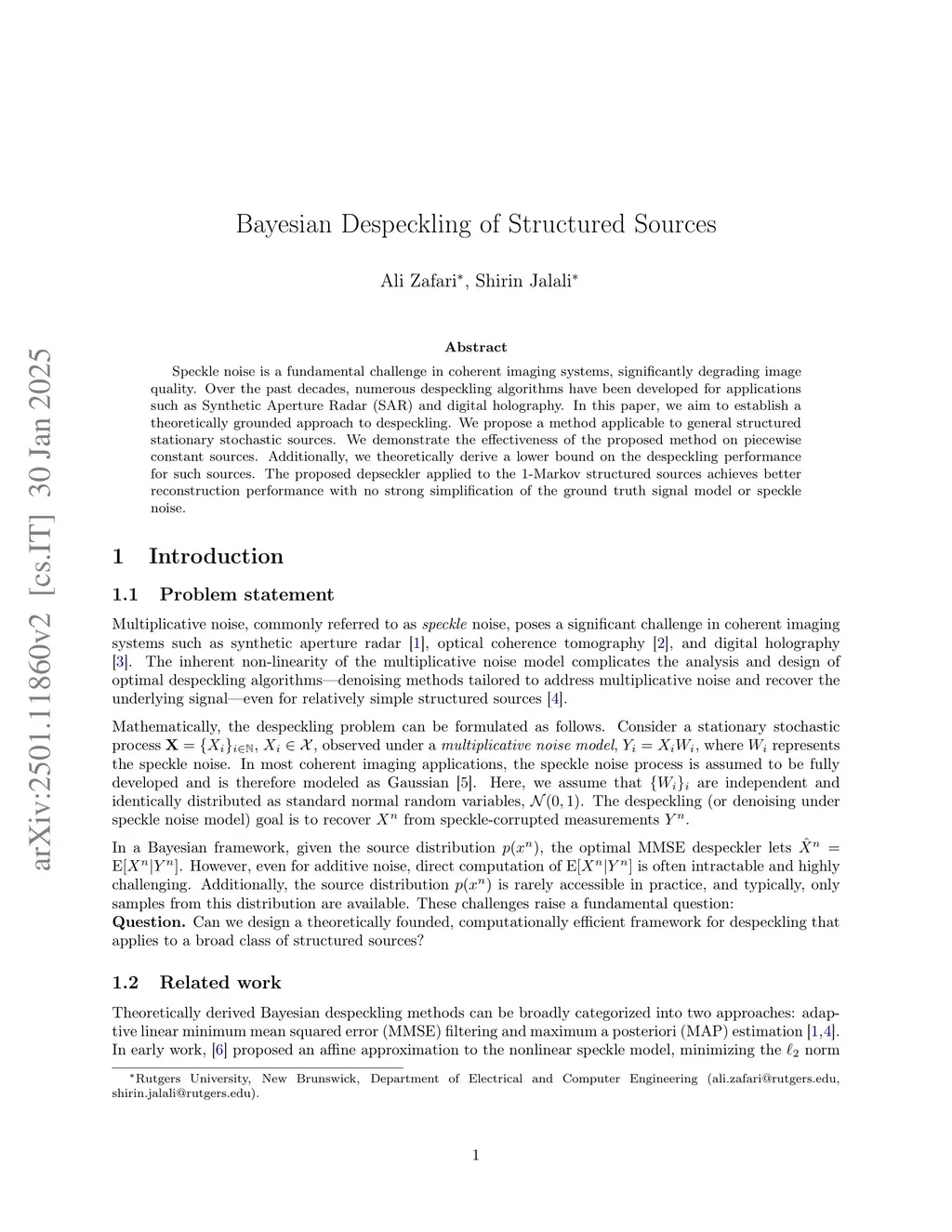 Speckle noise is a fundamental challenge in coherent imaging systems, significantly degrading image quality. Over the past decades, numerous despeckling algorithms have been developed for applications such as Synthetic Aperture Radar (SAR) and digital holography. In this paper, we aim to establish a theoretically grounded approach to despeckling. We propose a method applicable to general structured stationary stochastic sources. We demonstrate the effectiveness of the proposed method on piecewise constant sources. Additionally, we theoretically derive a lower bound on the despeckling performance for such sources. The proposed depseckler applied to the 1-Markov structured sources achieves better reconstruction performance with no strong simplification of the ground truth signal model or speckle noise.