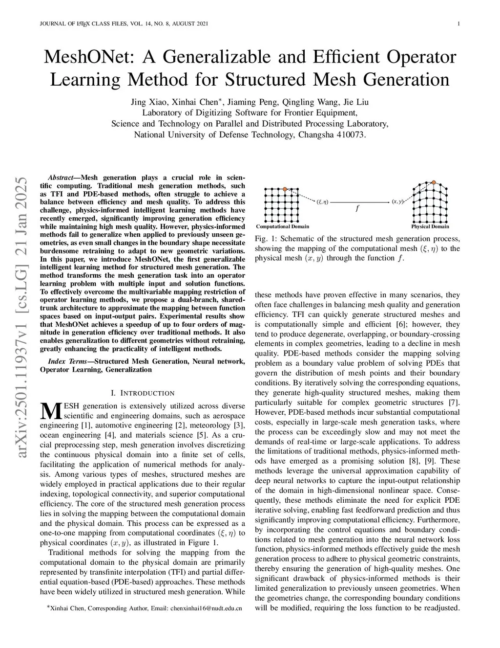MeshONet: A Generalizable and Efficient Operator Learning Method for Structured Mesh Generation