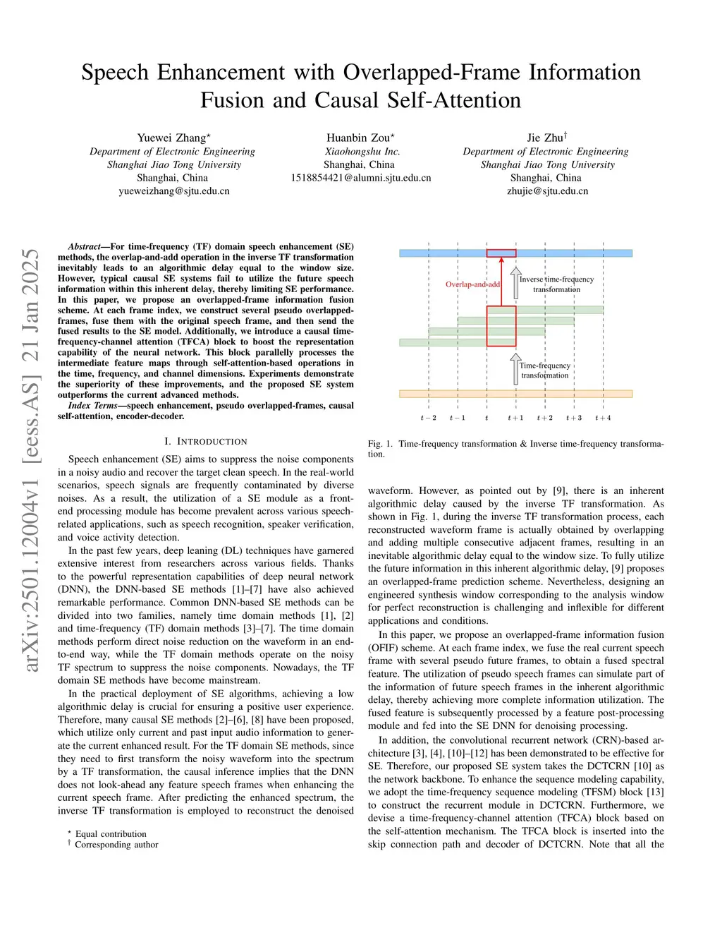 Speech Enhancement with Overlapped-Frame Information Fusion and Causal Self-Attention
