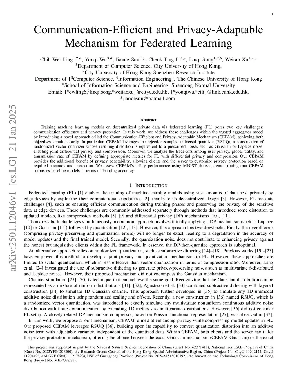 Communication-Efficient and Privacy-Adaptable Mechanism for Federated Learning