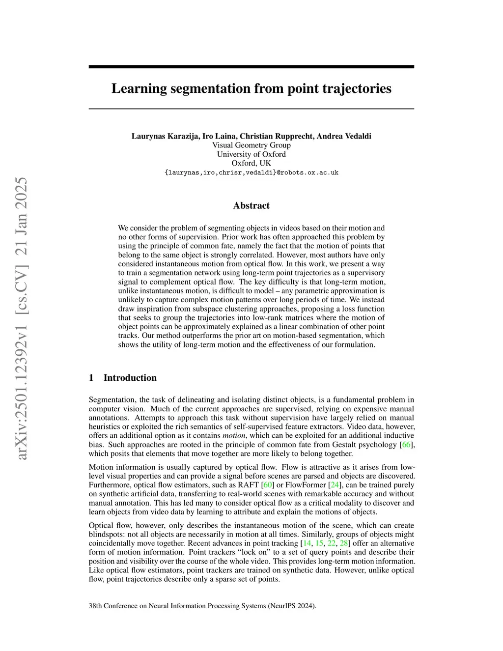 Learning segmentation from point trajectories
