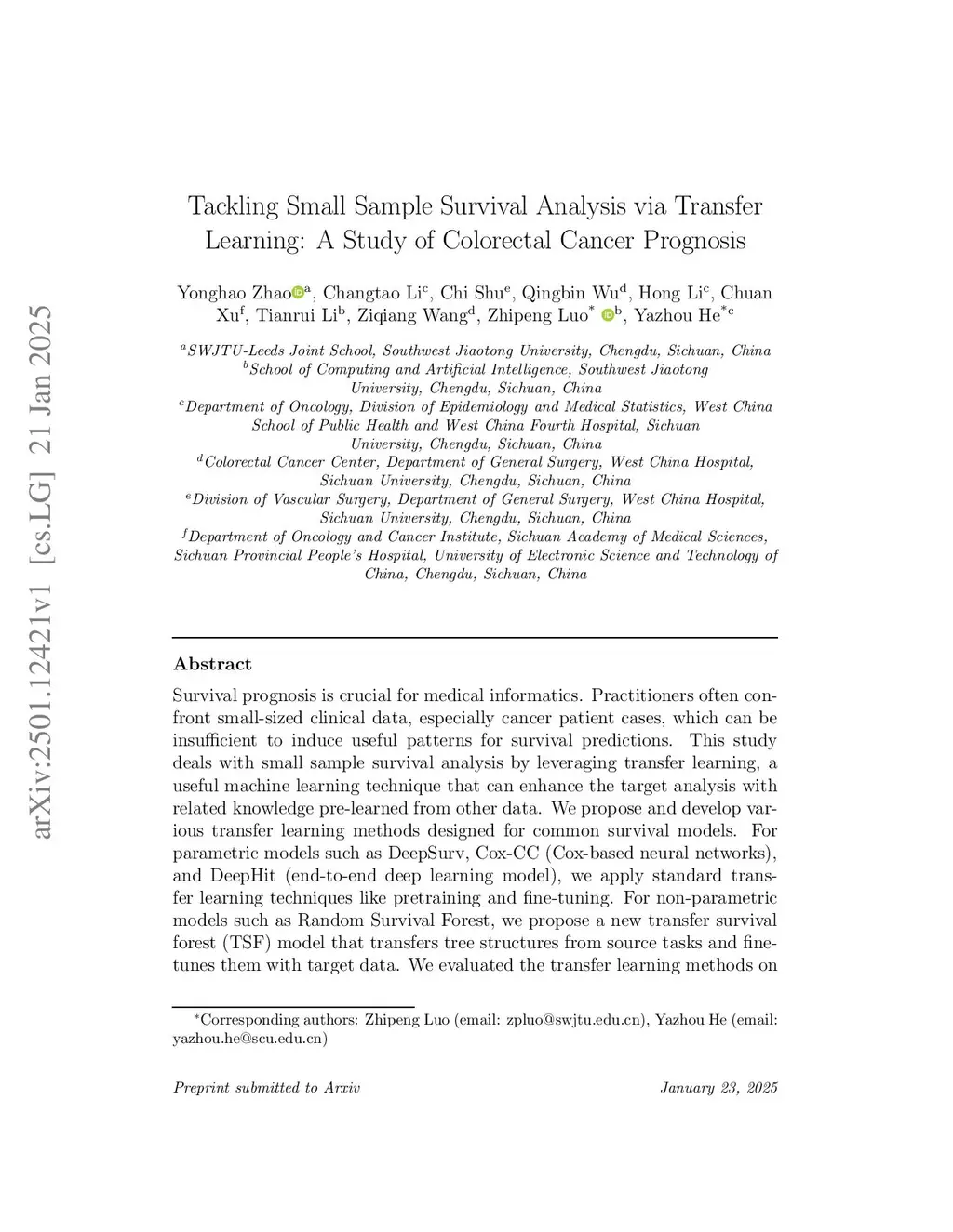 Tackling Small Sample Survival Analysis via Transfer Learning: A Study of Colorectal Cancer Prognosis