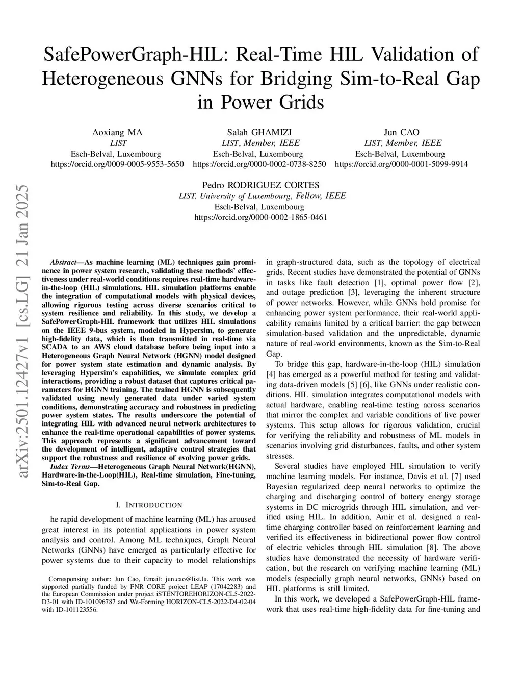 As machine learning (ML) techniques gain prominence in power system research, validating these methods' effectiveness under real-world conditions requires real-time hardware-in-the-loop (HIL) simulations. HIL simulation platforms enable the integration of computational models with physical devices, allowing rigorous testing across diverse scenarios critical to system resilience and reliability. In this study, we develop a SafePowerGraph-HIL framework that utilizes HIL simulations on the IEEE 9-bus system, modeled in Hypersim, to generate high-fidelity data, which is then transmitted in real-time via SCADA to an AWS cloud database before being input into a Heterogeneous Graph Neural Network (HGNN) model designed for power system state estimation and dynamic analysis. By leveraging Hypersim's capabilities, we simulate complex grid interactions, providing a robust dataset that captures critical parameters for HGNN training. The trained HGNN is subsequently validated using newly generated data under varied system conditions, demonstrating accuracy and robustness in predicting power system states. The results underscore the potential of integrating HIL with advanced neural network architectures to enhance the real-time operational capabilities of power systems. This approach represents a significant advancement toward the development of intelligent, adaptive control strategies that support the robustness and resilience of evolving power grids.