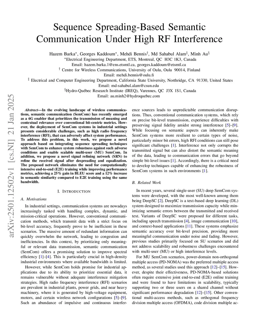 In the evolving landscape of wireless communications, semantic communication (SemCom) has recently emerged as a 6G enabler that prioritizes the transmission of meaning and contextual relevance over conventional bit-centric metrics. However, the deployment of SemCom systems in industrial settings presents considerable challenges, such as high radio frequency interference (RFI), that can adversely affect system performance. To address this problem, in this work, we propose a novel approach based on integrating sequence spreading techniques with SemCom to enhance system robustness against such adverse conditions and enable scalable multi-user (MU) SemCom. In addition, we propose a novel signal refining network (SRN) to refine the received signal after despreading and equalization. The proposed network eliminates the need for computationally intensive end-to-end (E2E) training while improving performance metrics, achieving a 25% gain in BLEU score and a 12% increase in semantic similarity compared to E2E training using the same bandwidth.