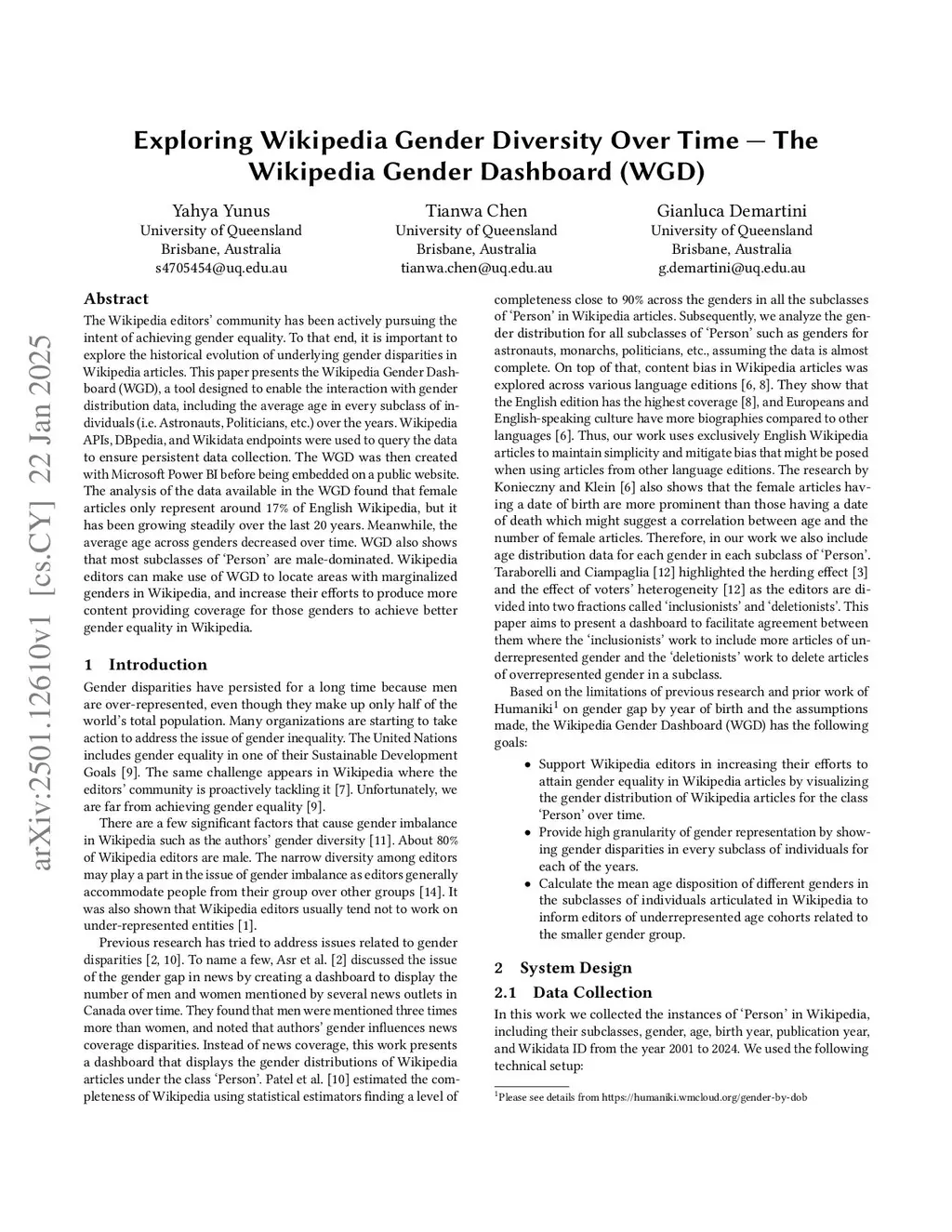 Exploring Wikipedia Gender Diversity Over Time The Wikipedia Gender Dashboard (WGD)