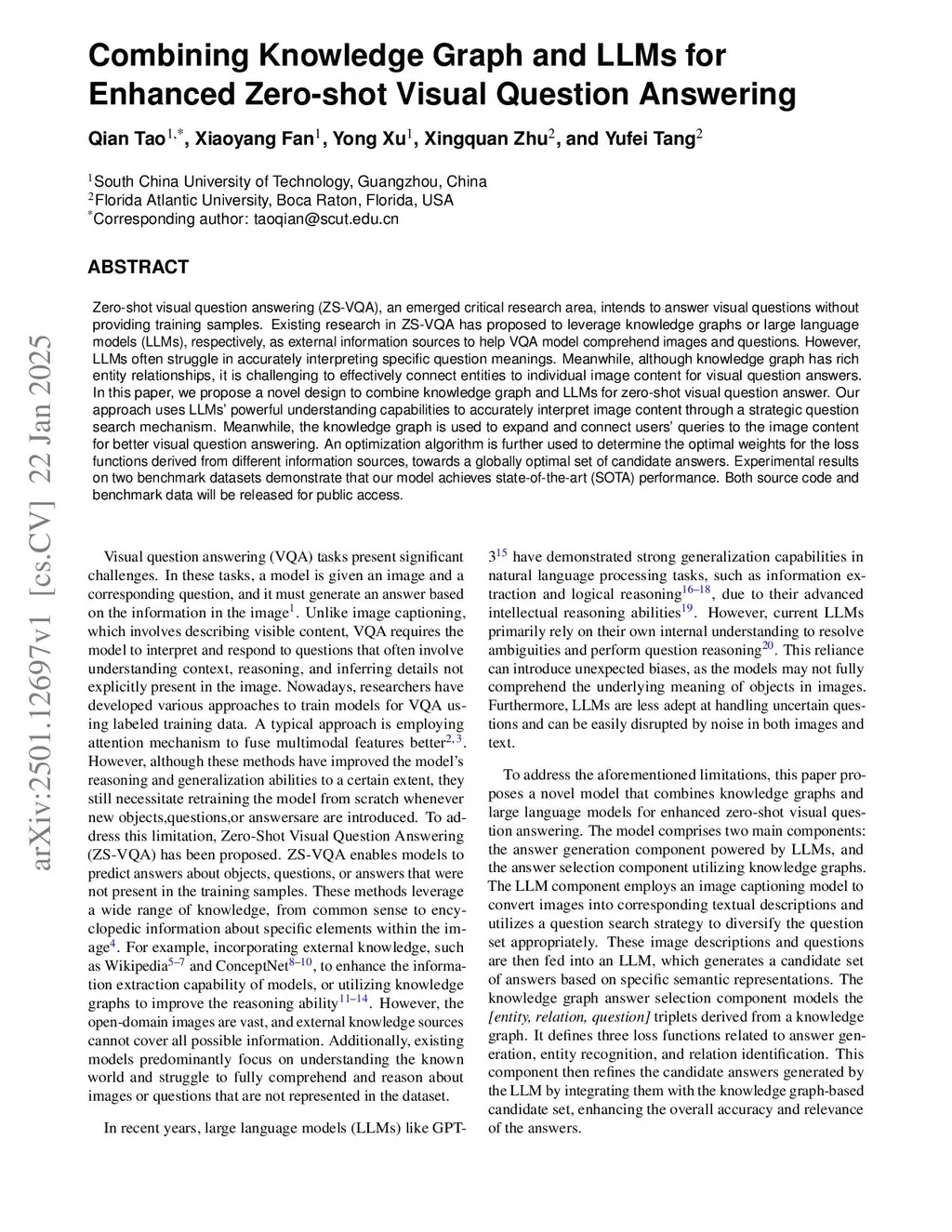 Combining Knowledge Graph and LLMs for Enhanced Zero-shot Visual Question Answering