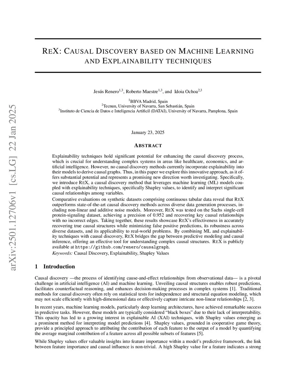 Explainable Artificial Intelligence (XAI) techniques hold significant potential for enhancing the causal discovery process, which is crucial for understanding complex systems in areas like healthcare, economics, and artificial intelligence. However, no causal discovery methods currently incorporate explainability into their models to derive the causal graphs. Thus, in this paper we explore this innovative approach, as it offers substantial potential and represents a promising new direction worth investigating. Specifically, we introduce ReX, a causal discovery method that leverages machine learning (ML) models coupled with explainability techniques, specifically Shapley values, to identify and interpret significant causal relationships among variables. Comparative evaluations on synthetic datasets comprising continuous tabular data reveal that ReX outperforms state-of-the-art causal discovery methods across diverse data generation processes, including non-linear and additive noise models. Moreover, ReX was tested on the Sachs single-cell protein-signaling dataset, achieving a precision of 0.952 and recovering key causal relationships with no incorrect edges. Taking together, these results showcase ReX's effectiveness in accurately recovering true causal structures while minimizing false positive predictions, its robustness across diverse datasets, and its applicability to real-world problems. By combining ML and explainability techniques with causal discovery, ReX bridges the gap between predictive modeling and causal inference, offering an effective tool for understanding complex causal structures.