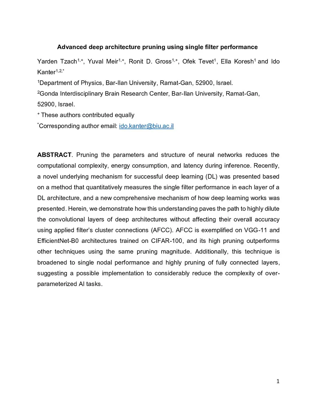 Pruning the parameters and structure of neural networks reduces the computational complexity, energy consumption, and latency during inference. Recently, a novel underlying mechanism for successful deep learning (DL) was presented based on a method that quantitatively measures the single filter performance in each layer of a DL architecture, and a new comprehensive mechanism of how deep learning works was presented. This statistical mechanics inspired viewpoint enables to reveal the macroscopic behavior of the entire network from the microscopic performance of each filter and their cooperative behavior. Herein, we demonstrate how this understanding paves the path to high quenched dilution of the convolutional layers of deep architectures without affecting their overall accuracy using applied filter cluster connections (AFCC). AFCC is exemplified on VGG-11 and EfficientNet-B0 architectures trained on CIFAR-100, and its high pruning outperforms other techniques using the same pruning magnitude. Additionally, this technique is broadened to single nodal performance and highly pruning of fully connected layers, suggesting a possible implementation to considerably reduce the complexity of over-parameterized AI tasks.