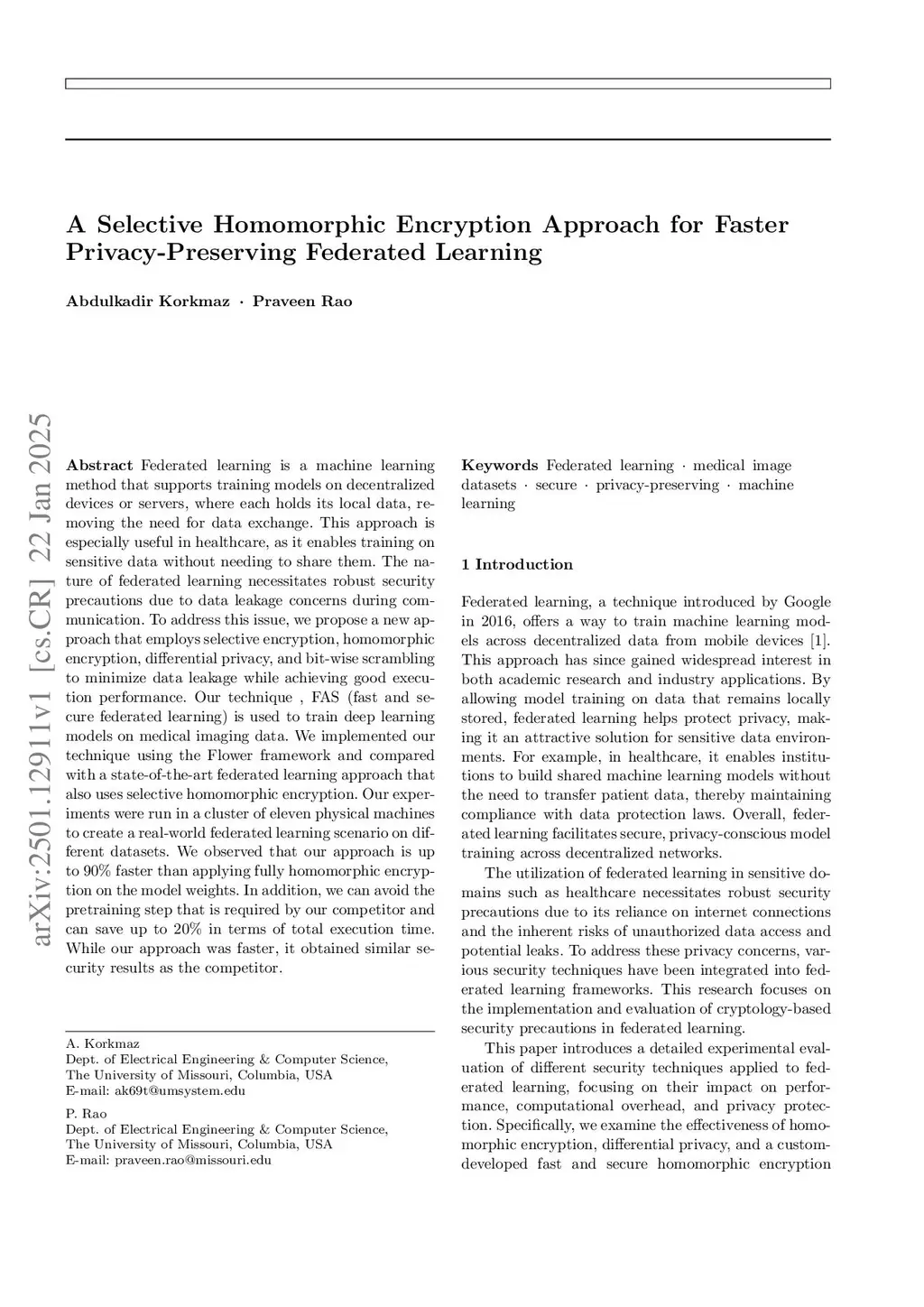 A Selective Homomorphic Encryption Approach for Faster Privacy-Preserving Federated Learning