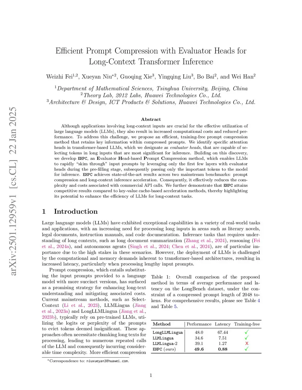 Efficient Prompt Compression with Evaluator Heads for Long-Context Transformer Inference