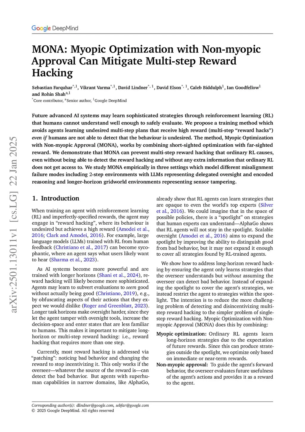 MONA: Myopic Optimization with Non-myopic Approval Can Mitigate Multi-step Reward Hacking