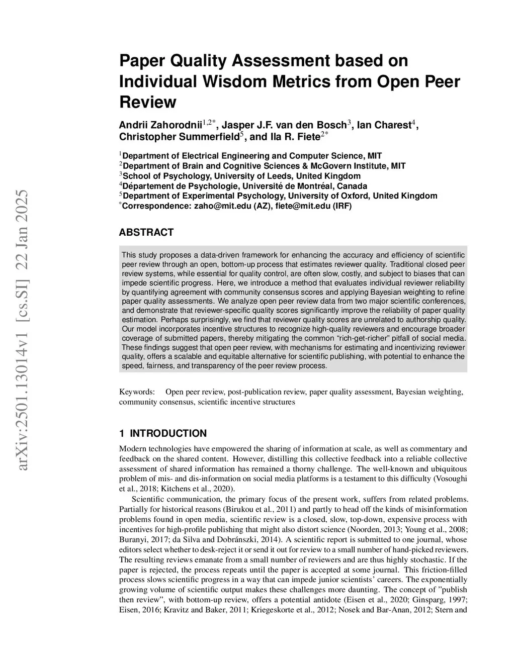 Paper Quality Assessment based on Individual Wisdom Metrics from Open Peer Review