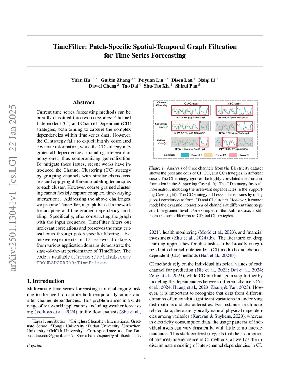 Time series forecasting methods generally fall into two main categories: Channel Independent (CI) and Channel Dependent (CD) strategies. While CI overlooks important covariate relationships, CD captures all dependencies without distinction, introducing noise and reducing generalization. Recent advances in Channel Clustering (CC) aim to refine dependency modeling by grouping channels with similar characteristics and applying tailored modeling techniques. However, coarse-grained clustering struggles to capture complex, time-varying interactions effectively. To address these challenges, we propose TimeFilter, a GNN-based framework for adaptive and fine-grained dependency modeling. After constructing the graph from the input sequence, TimeFilter refines the learned spatial-temporal dependencies by filtering out irrelevant correlations while preserving the most critical ones in a patch-specific manner. Extensive experiments on 13 real-world datasets from diverse application domains demonstrate the state-of-the-art performance of TimeFilter. The code is available atthis https URL.