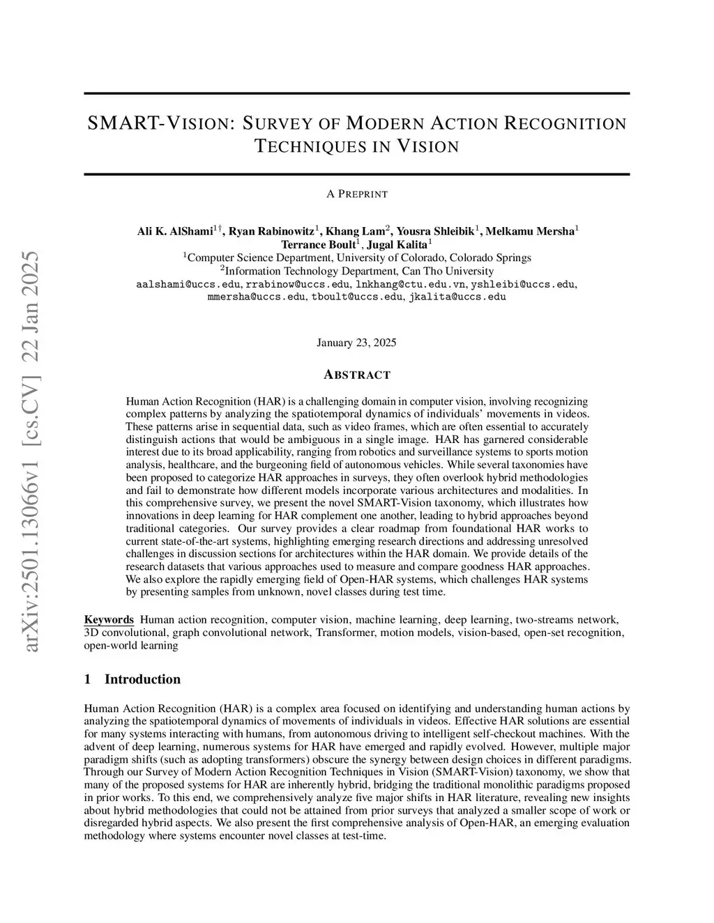 SMART-Vision: Survey of Modern Action Recognition Techniques in Vision