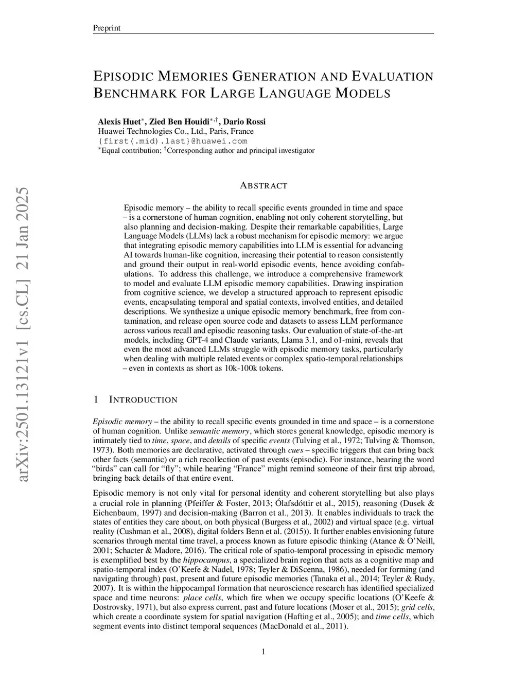 Episodic Memories Generation and Evaluation Benchmark for Large Language Models