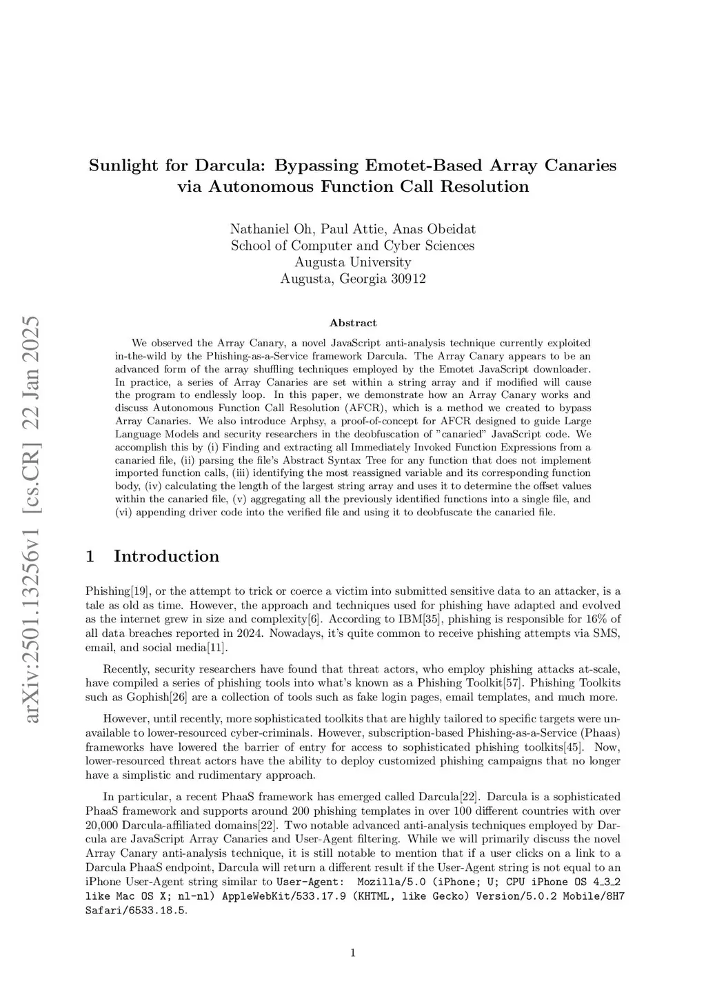 We observed the Array Canary, a novel JavaScript anti-analysis technique currently exploited in-the-wild by the Phishing-as-a-Service framework Darcula. The Array Canary appears to be an advanced form of the array shuffling techniques employed by the Emotet JavaScript downloader. In practice, a series of Array Canaries are set within a string array and if modified will cause the program to endlessly loop. In this paper, we demonstrate how an Array Canary works and discuss Autonomous Function Call Resolution (AFCR), which is a method we created to bypass Array Canaries. We also introduce Arphsy, a proof-of-concept for AFCR designed to guide Large Language Models and security researchers in the deobfuscation of "canaried" JavaScript code. We accomplish this by (i) Finding and extracting all Immediately Invoked Function Expressions from a canaried file, (ii) parsing the file's Abstract Syntax Tree for any function that does not implement imported function calls, (iii) identifying the most reassigned variable and its corresponding function body, (iv) calculating the length of the largest string array and uses it to determine the offset values within the canaried file, (v) aggregating all the previously identified functions into a single file, and (vi) appending driver code into the verified file and using it to deobfuscate the canaried file.
