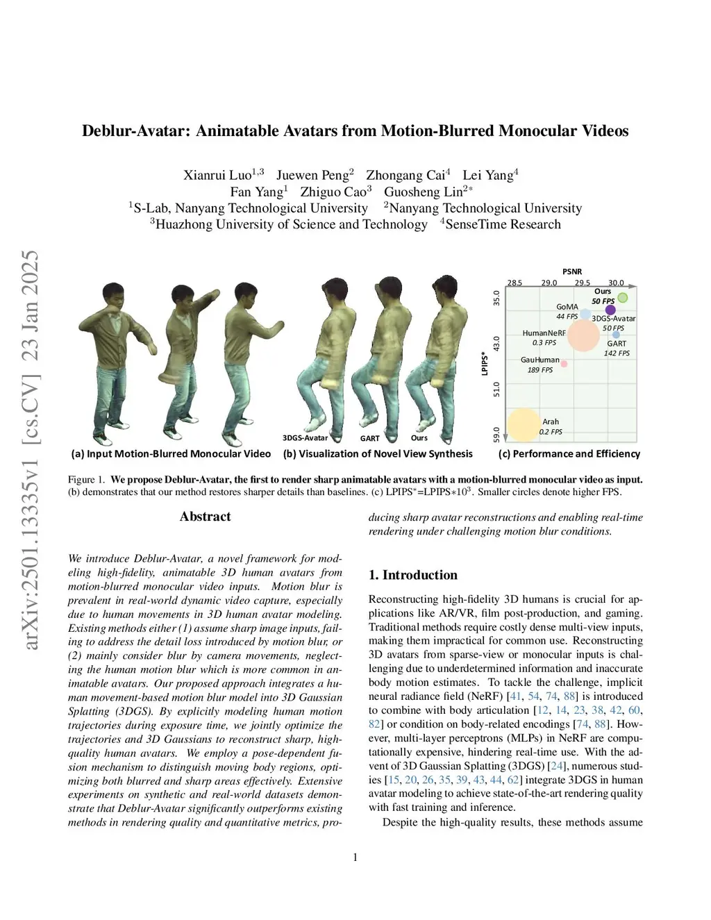 Deblur-Avatar: Animatable Avatars from Motion-Blurred Monocular Videos