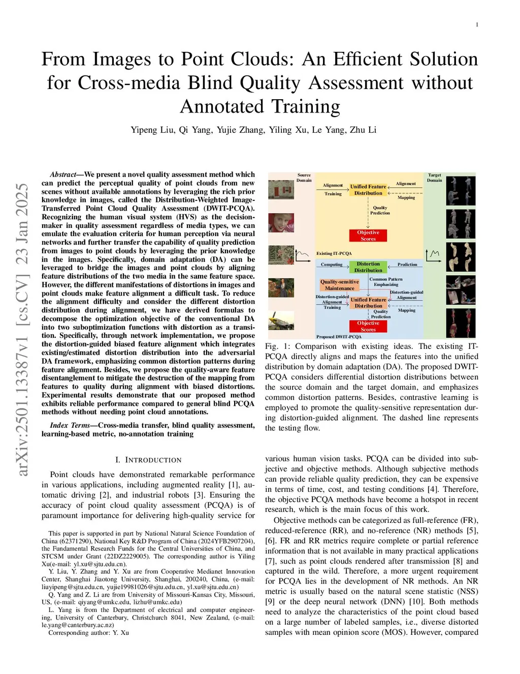From Images to Point Clouds: An Efficient Solution for Cross-media Blind Quality Assessment without Annotated Training