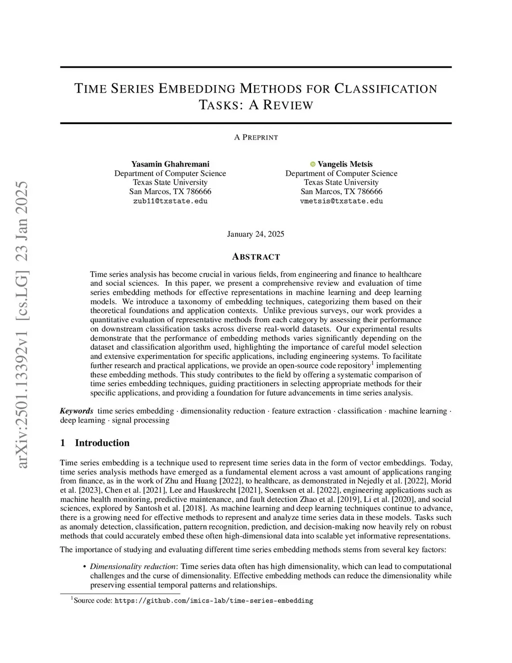 Time Series Embedding Methods for Classification Tasks: A Review