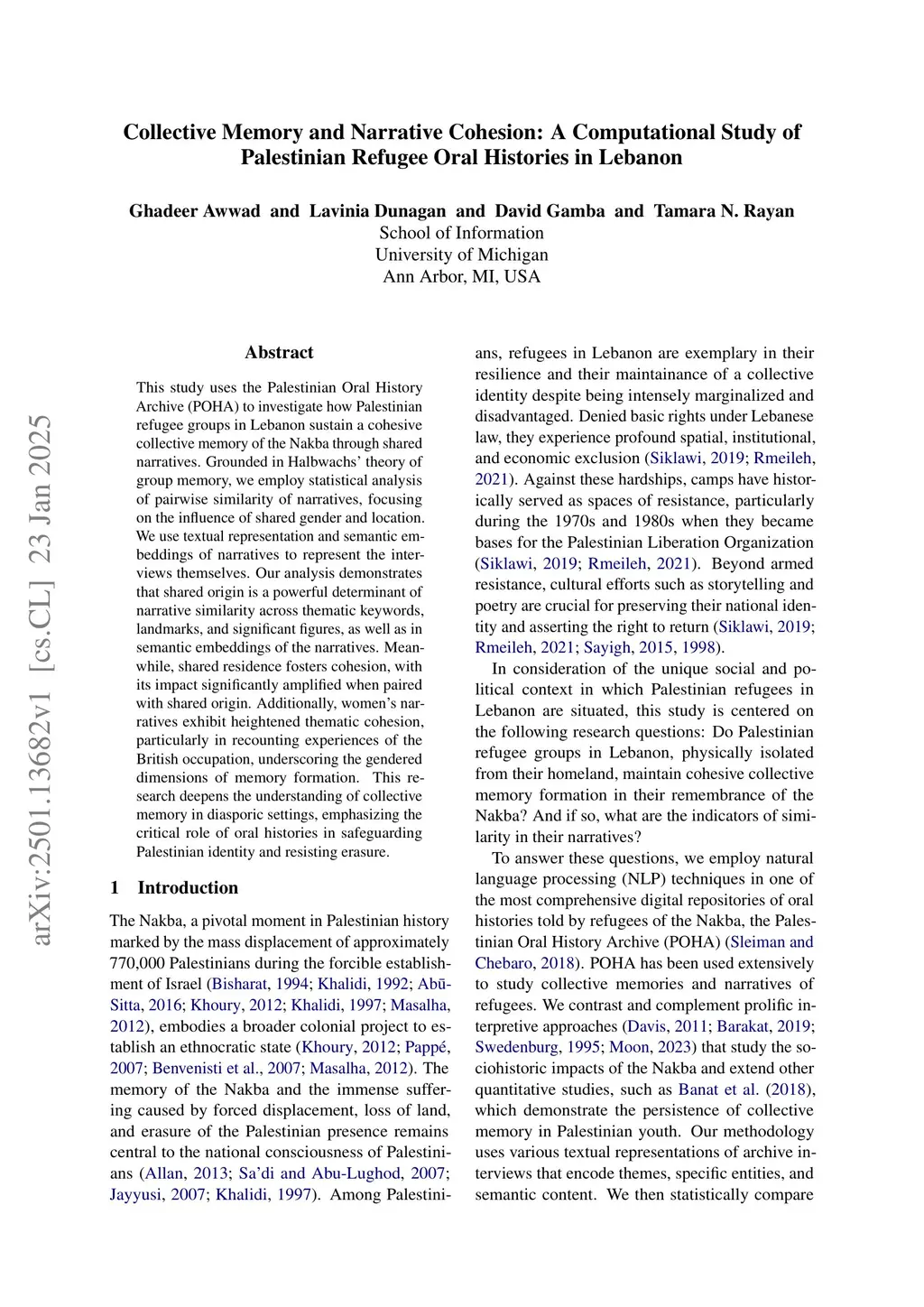 Collective Memory and Narrative Cohesion: A Computational Study of Palestinian Refugee Oral Histories in Lebanon