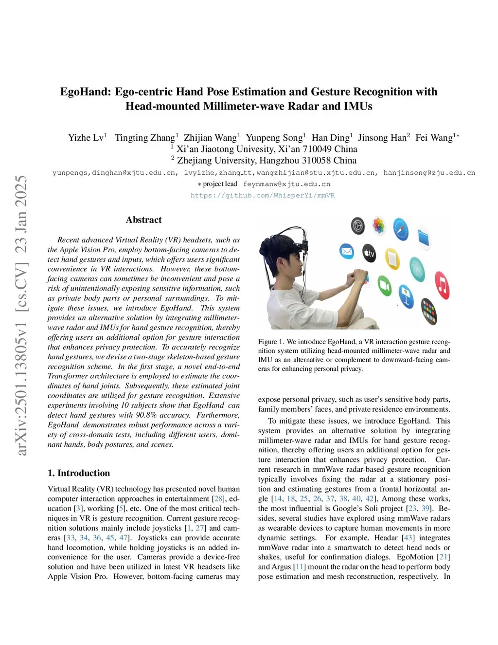 mmEgoHand: Egocentric Hand Pose Estimation and Gesture Recognition with Head-mounted Millimeter-wave Radar and IMU