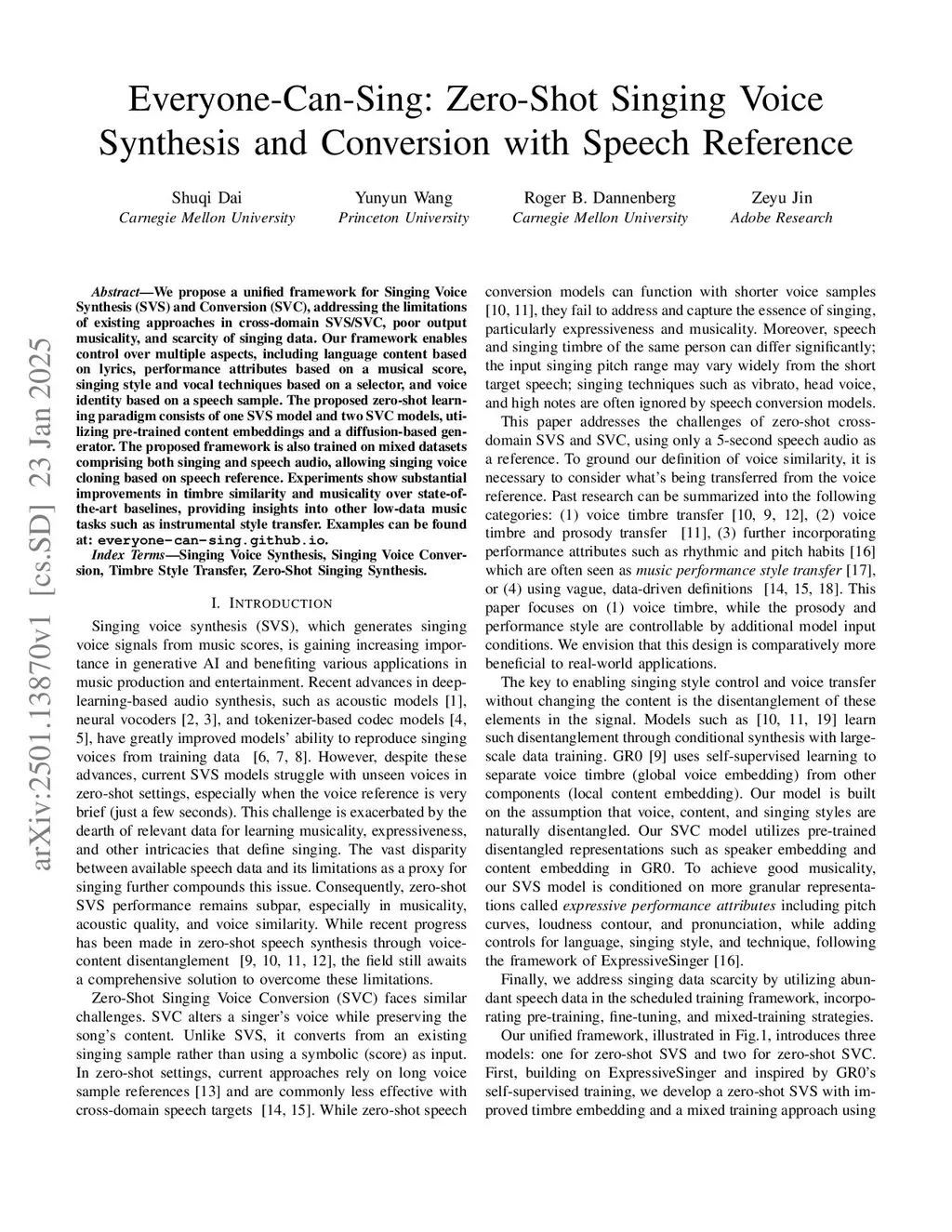 Everyone-Can-Sing: Zero-Shot Singing Voice Synthesis and Conversion with Speech Reference